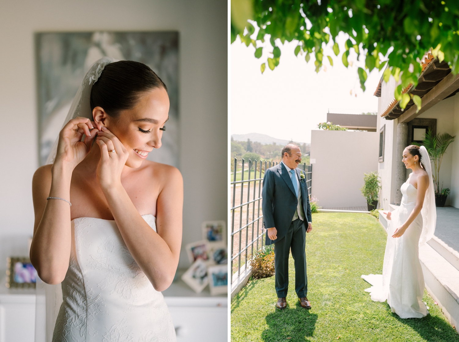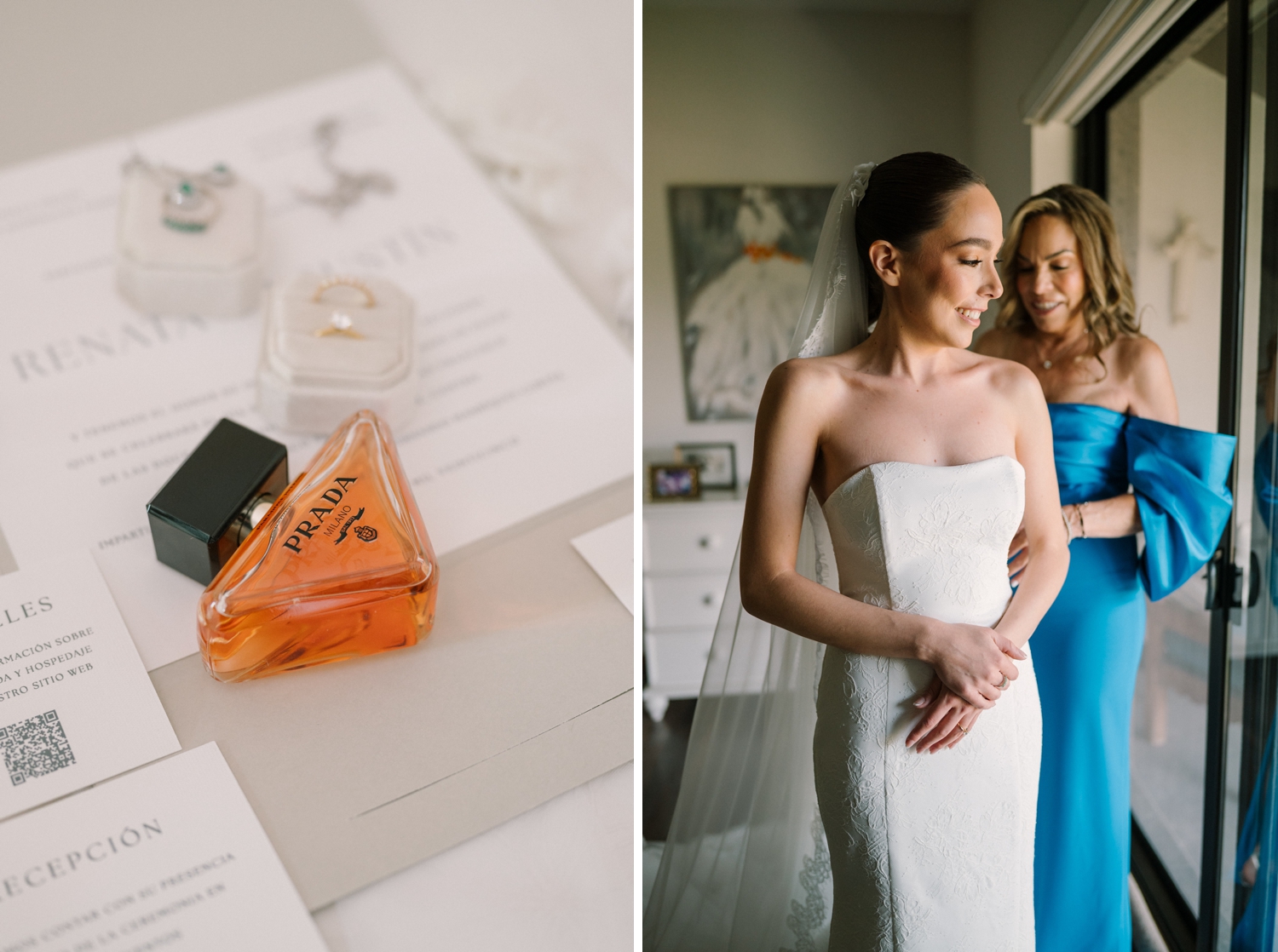 Wedding Gown: Classic strapless mermaid cut with simple lace and 2 different tops (off the shoulder and one shoulder). Designer was Mexican, Viviana Urrea.