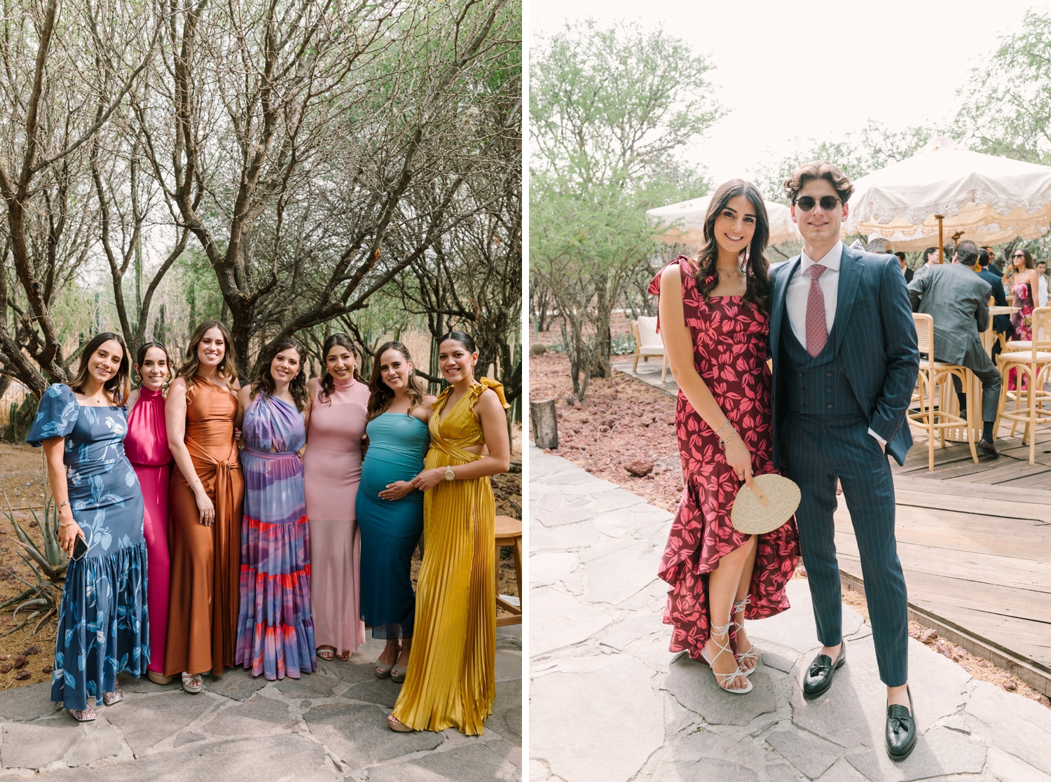The couple chose to honor San Miguel’s rich landscape with florals and décor built around local materials: clay vases, woven baskets, desert vegetation, and towering mezquite trees that became a natural cathedral for cocktail hour. Penzi Weddings designed a reception that felt like a living painting—mimbre lamps glowing overhead, hand-painted dance floors, and candlelight flickering over cozy, organic tablescapes. Surrounded by friends and family, Renata and Agustin celebrated with bold margaritas, elevated Mexican cuisine, and unforgettable surprises, including traditional Mojigangas that swept the party into a joyful whirl.