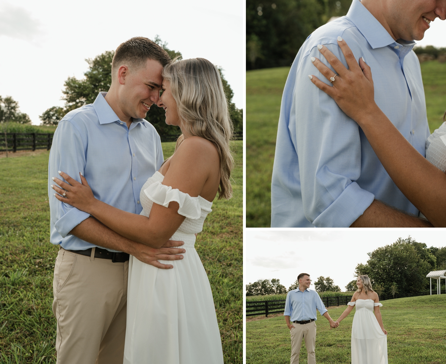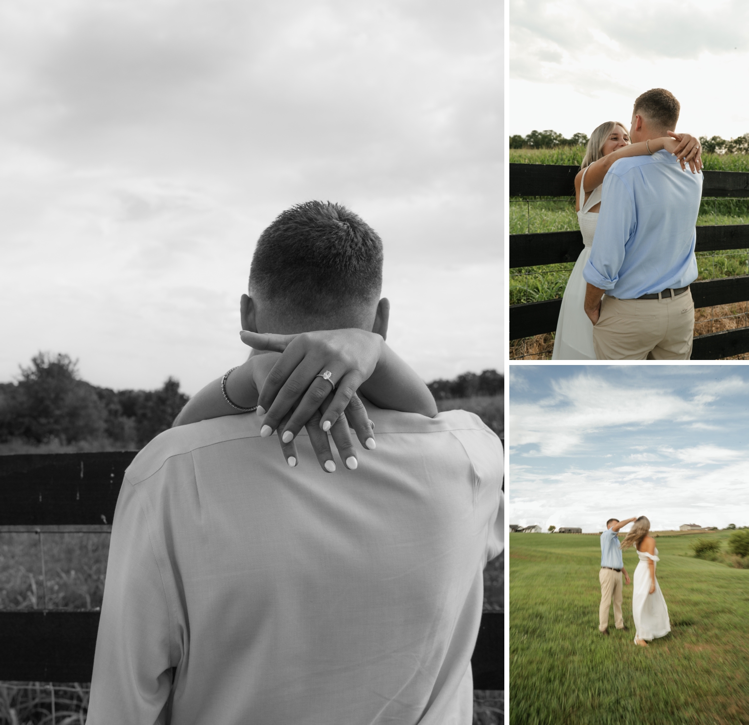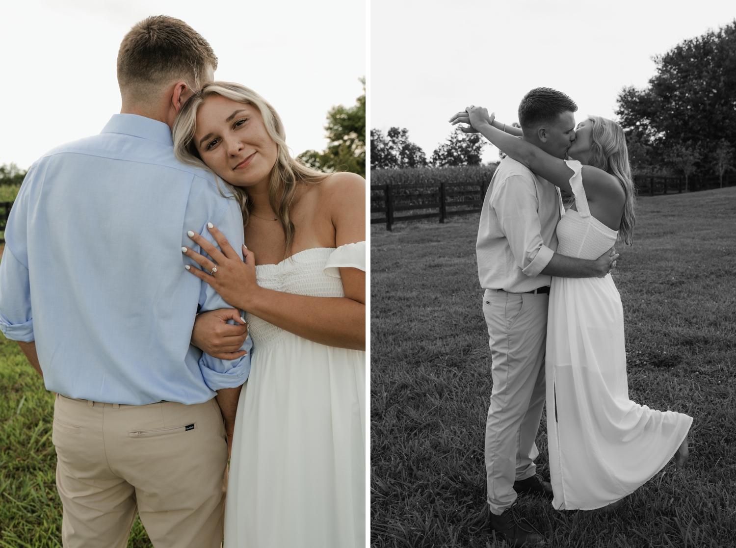 Soft golden light, open fields, and the simple magic of midsummer — Jasmine and Cade’s engagement session was the perfect portrait of effortless romance. Captured by Hannah Haggard of Light in the Dark Photography, their love story unfolded in the glow of a warm August evening at The Well at Cherry Well Farm.