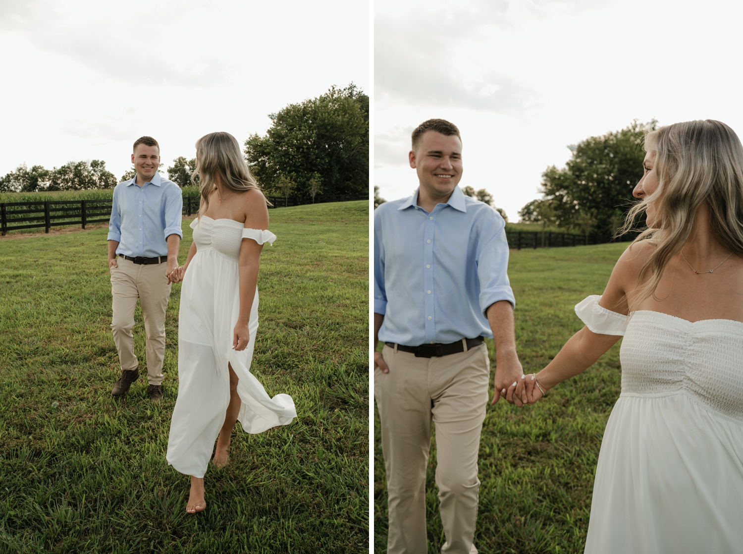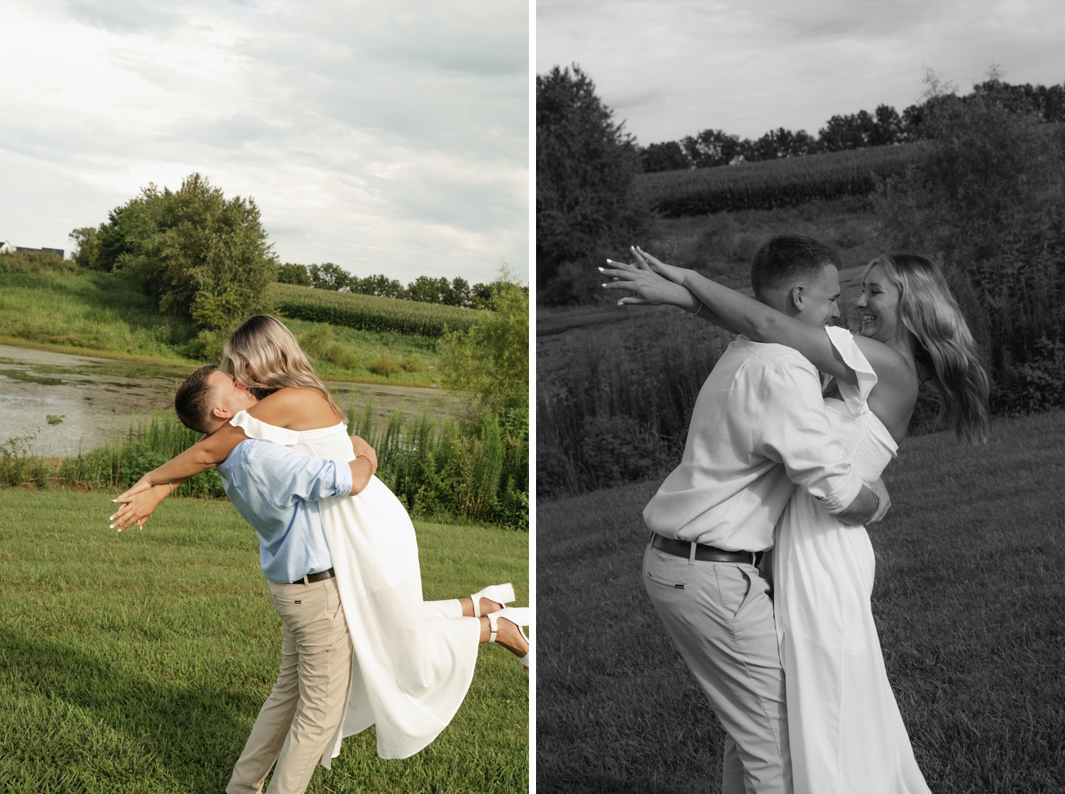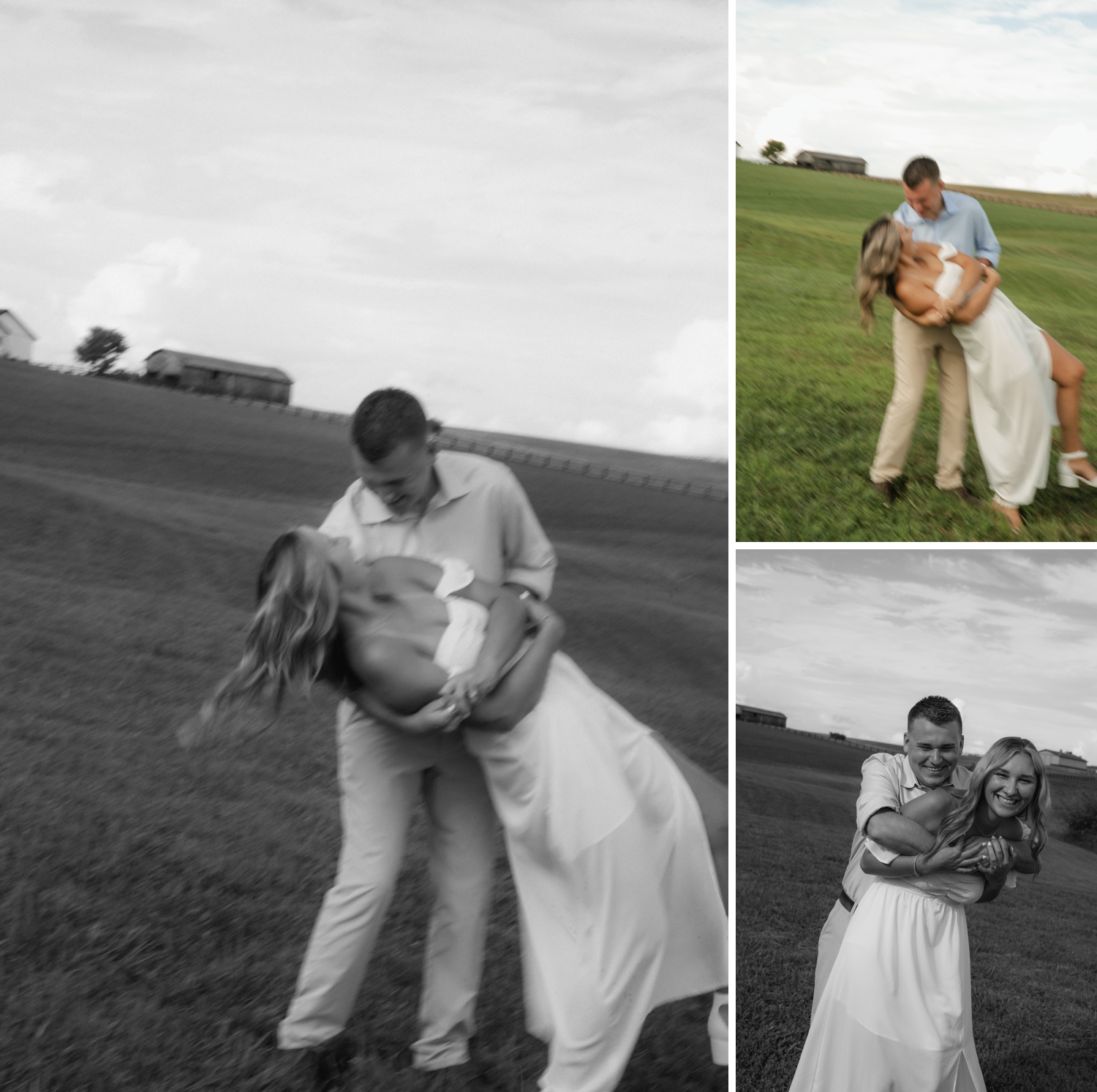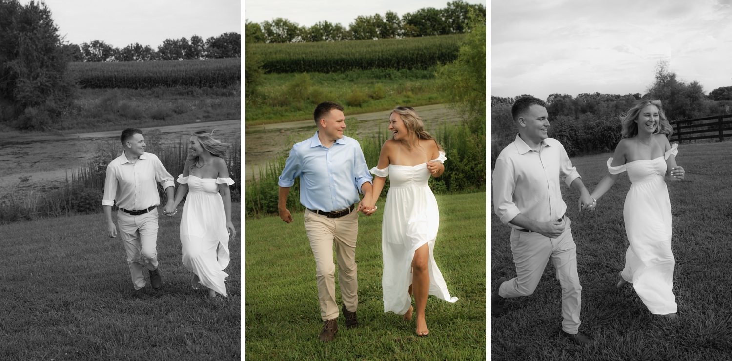 Barefoot and carefree, the couple ran through sunlit meadows, wrapped in laughter and tender glances that needed no direction. The atmosphere felt straight out of a love poem — quiet, nostalgic, and timeless. Hannah’s lens captured not only their joy but also the serenity of the summer air, weaving together an engagement session that feels both cinematic and deeply personal.