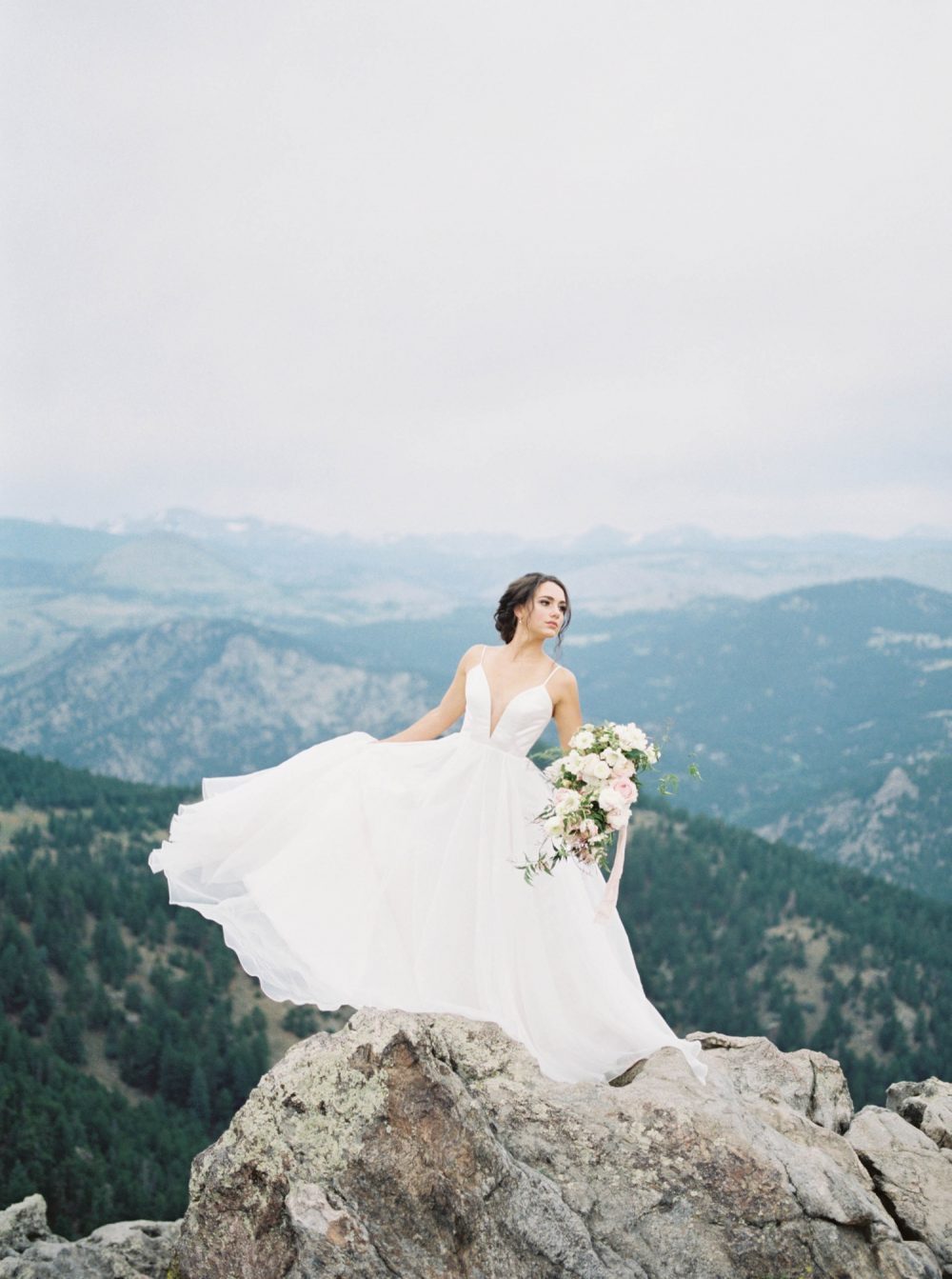 The mountains of Colorado always lend themselves spectacularly to any backdrop. They show a peace and tranquility that is unique among natural beauty destinations, and this bridal session aims to showcase their boldness with a soft bridal look in the foreground.
