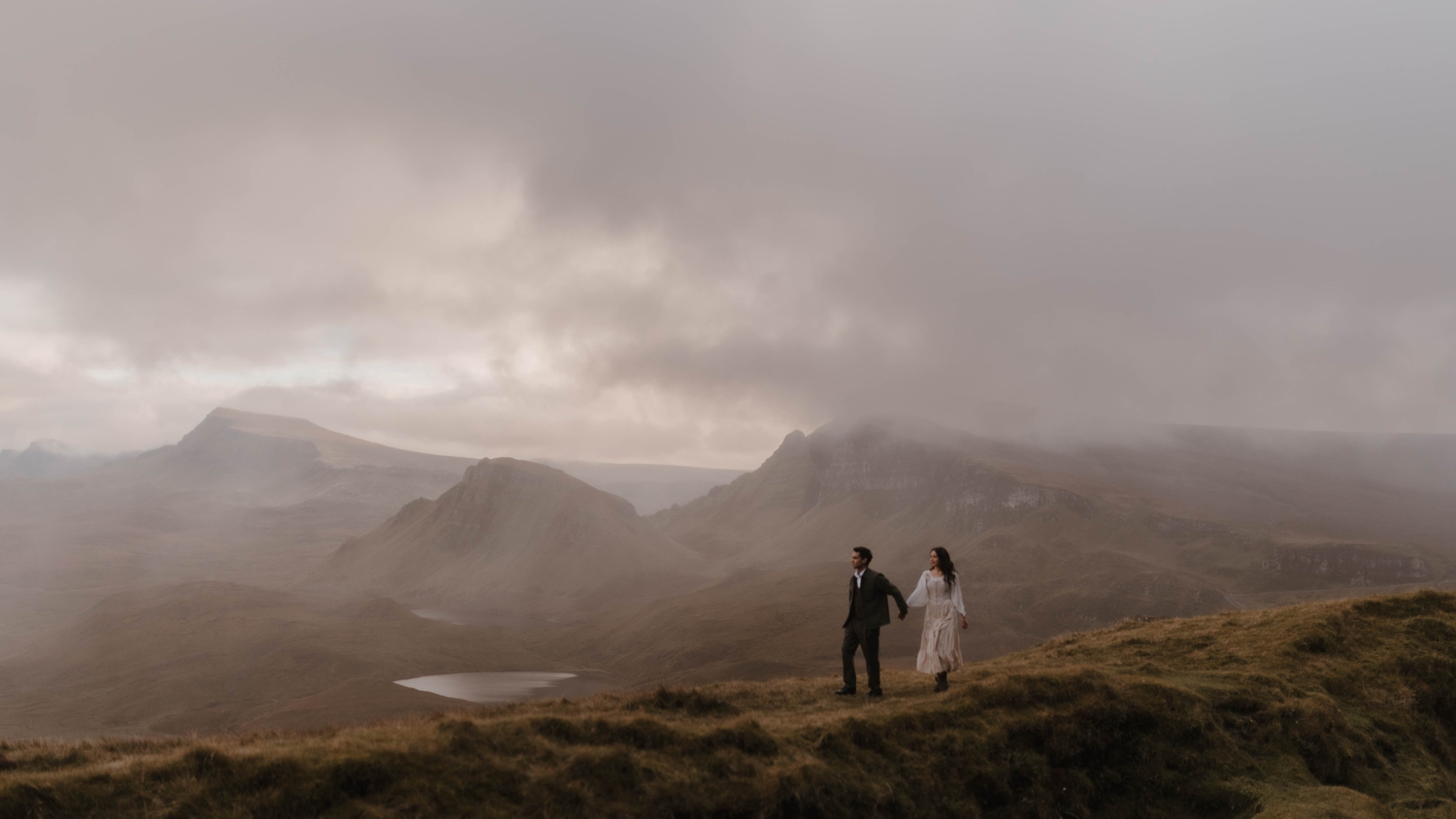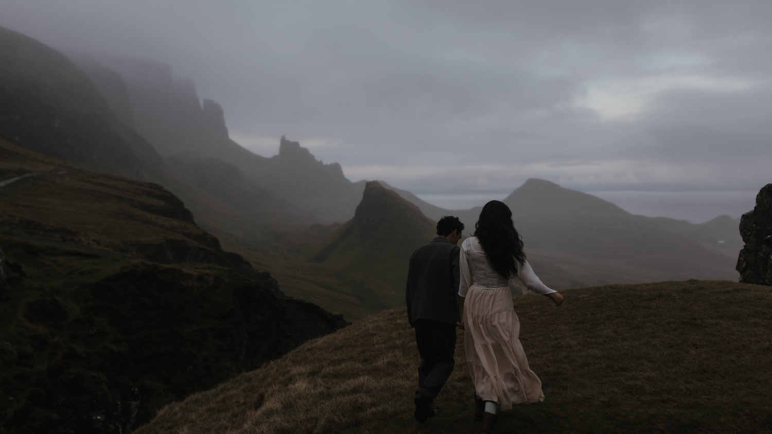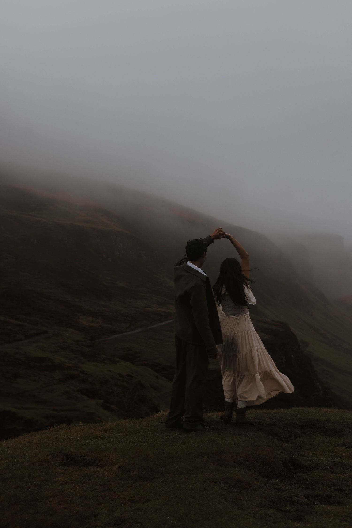 Against the windswept cliffs and moody autumn mist of the Isle of Skye, this breathtaking engagement session unfolded like a moving painting. Travelling all the way from Orlando, Florida, the couple embraced Scotland’s raw Highlands as the backdrop for a deeply intimate and fine-art inspired experience. Photographer Aly Robinson drew from classical masters—Botticelli’s ethereal softness and Caravaggio’s dramatic chiaroscuro—to create a visual narrative rich with movement, texture, and emotion.