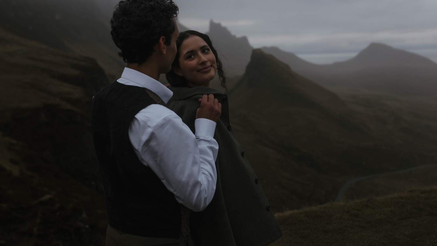 As the light shifted and the weather danced around them, every frame became part of a living dialogue between art and emotion. The result is cinematic and atmospheric: a love story woven into Scotland’s rugged beauty.
