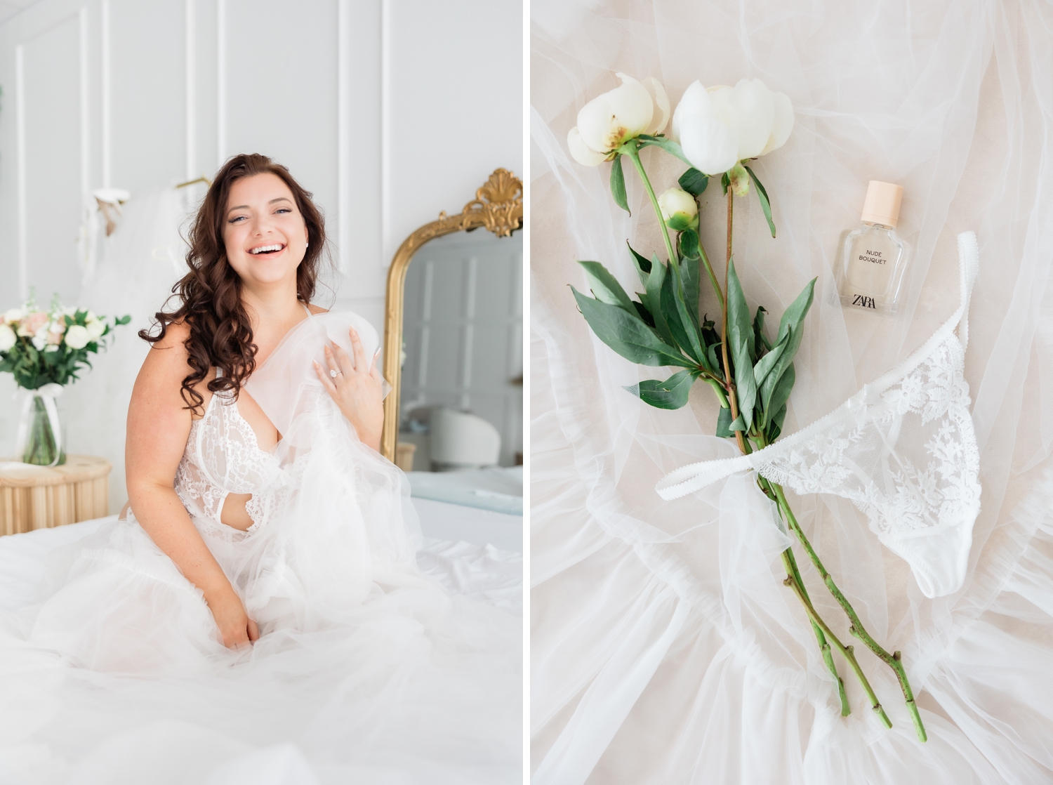“Soft, romantic, and timeless; this bridal boudoir session captures a bride before her wedding day.”